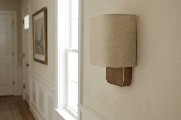 The transitional style linen shade wall light represents a lighting fixture that bridges traditional and contemporary design aesthetics. It typically...